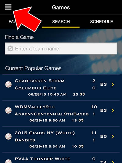 - Press the "Hamburger" icon in the upper left to reveal the menu screen